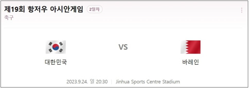 항저우 진화 경기장에서 치뤄진 대한민국 VS 바레인 경기를 다시 볼 수 있습니다.