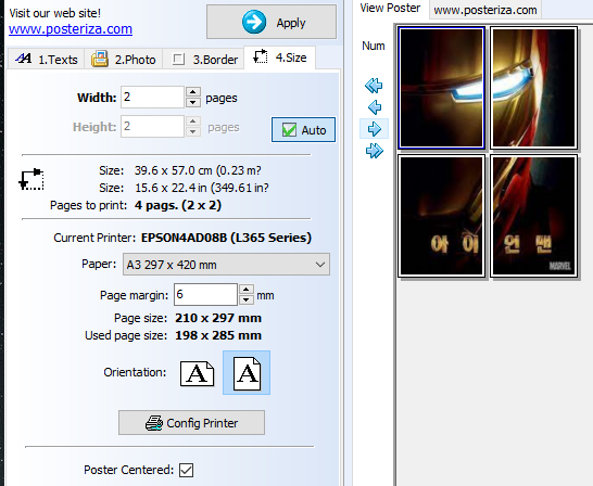 무료 프로그램 posteriza의 분할인쇄 기능을 사용하여 A3포스터를 쉽게 만들수 있다.