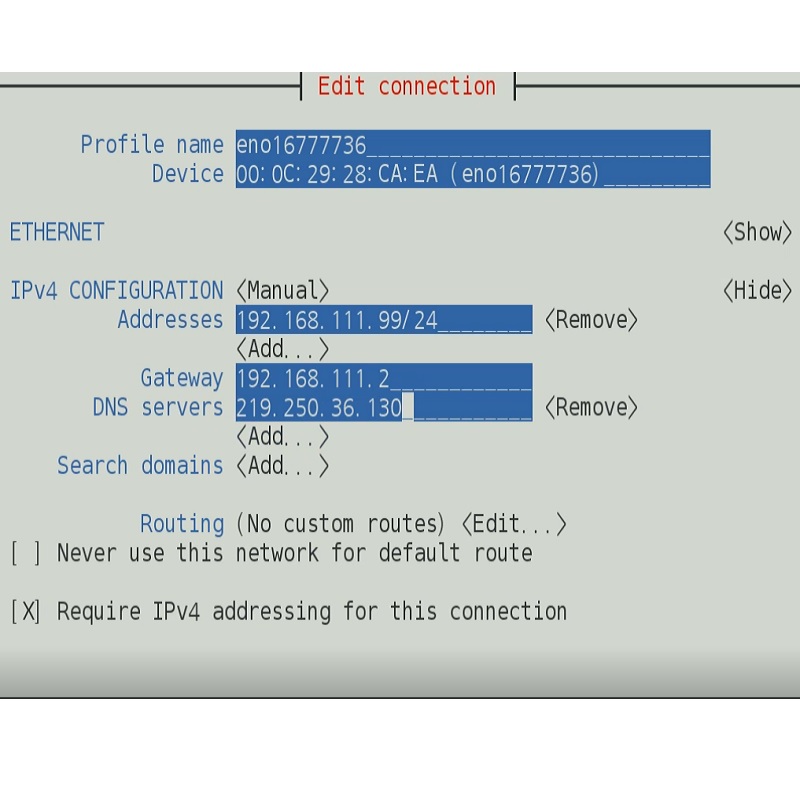 > 'Edit Connection' 창에는 IPv4 설정을 직접 키보드로 입력하여 수정할 수 있도록 칸이 만들어져 있다.